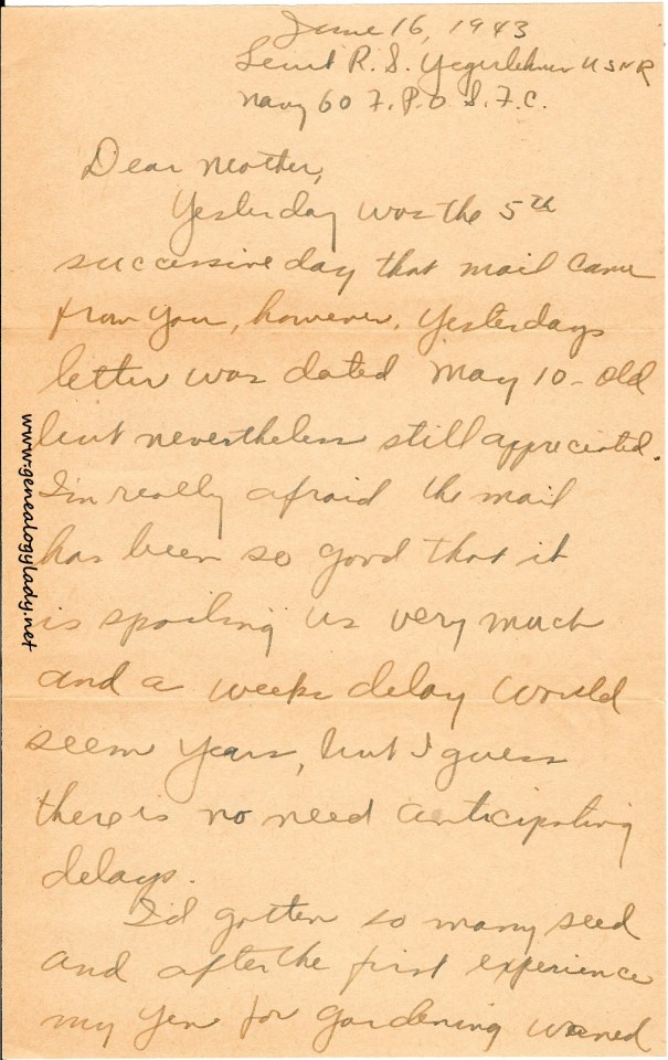 Series I: World War II Correspondence – Roscoe & Gladys (Foster) Yegerlehner, 1942-1946