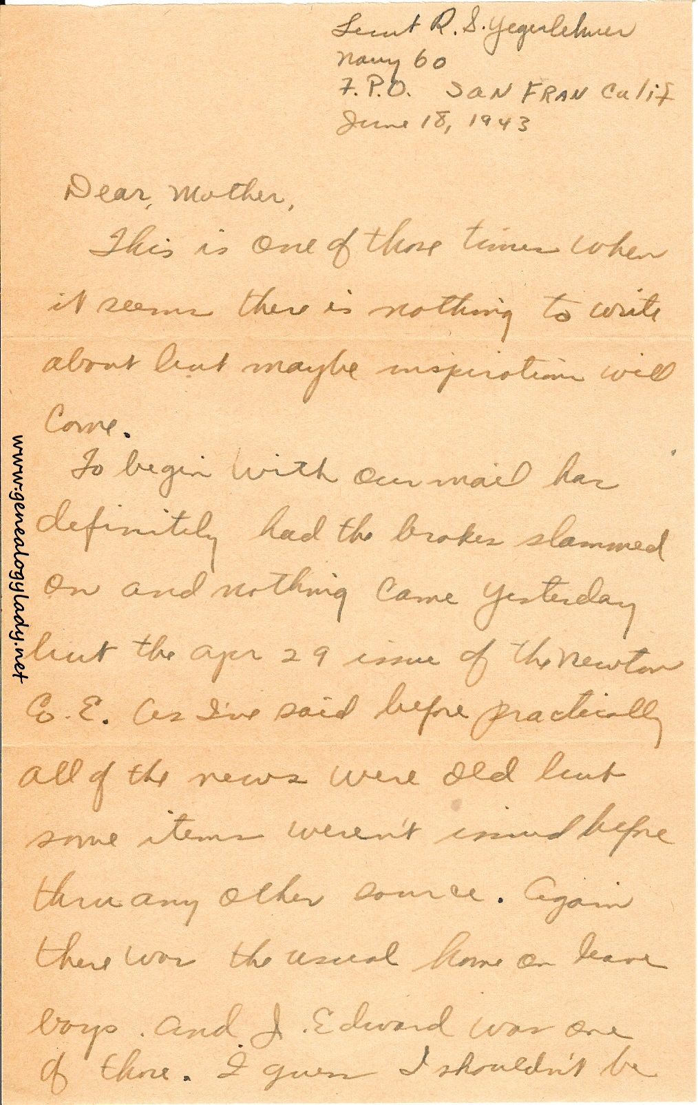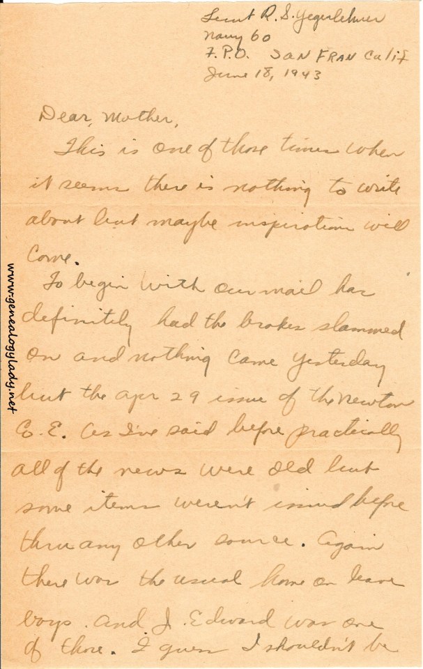 Series I: World War II Correspondence – Roscoe & Gladys (Foster) Yegerlehner, 1942-1946