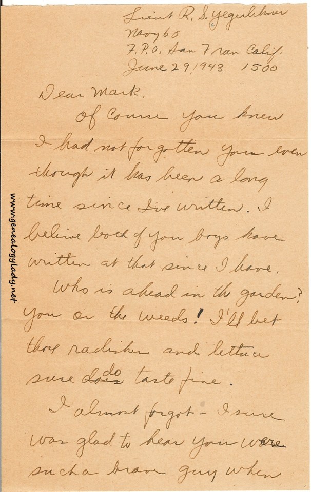 Series I: World War II Correspondence – Roscoe & Gladys (Foster) Yegerlehner, 1942-1946