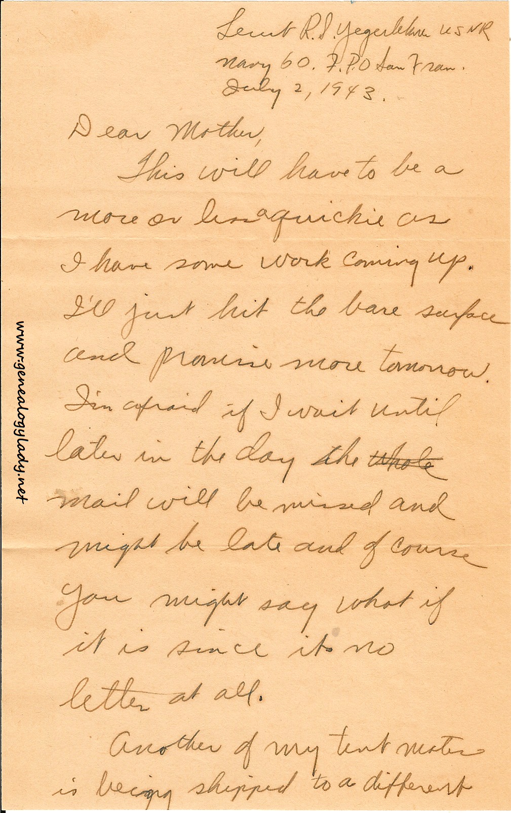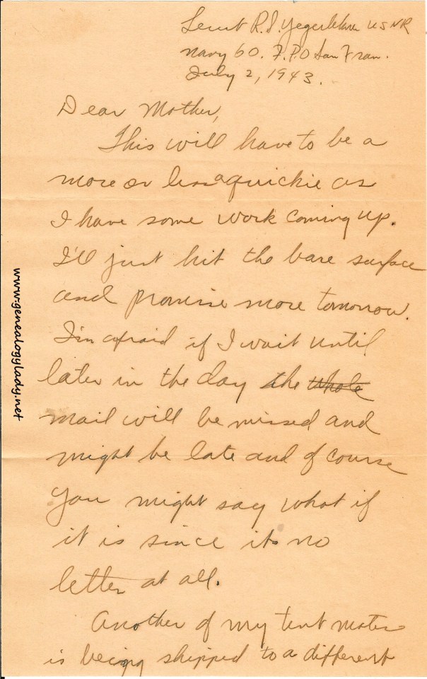 Series I: World War II Correspondence – Roscoe & Gladys (Foster) Yegerlehner, 1942-1946