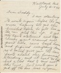 [page 2] old pol. And it was $246.91 – also paid Link for the bike 35⁰⁰ so that took about all the extra you had sent. The Hancock has to be pd in July so I have already written ck for the three premiums which total $77.28 and that is deducted from the bank acct and I now have a balance of $91.13 – but that includes the last two cks. mother rec’d (52⁰⁰). However half of that amt. I think should be considered outs. There is nothing of any size that has to be paid now until the auto Ins. is due in Aug. & that won’t have to be pd. till Sept. There is a new law that everyone operating a car has to carry $11,000 liability – and if there