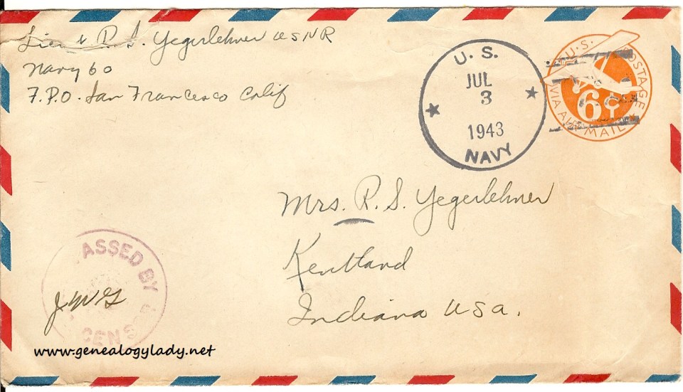 Series I: World War II Correspondence – Roscoe & Gladys (Foster) Yegerlehner, 1942-1946
