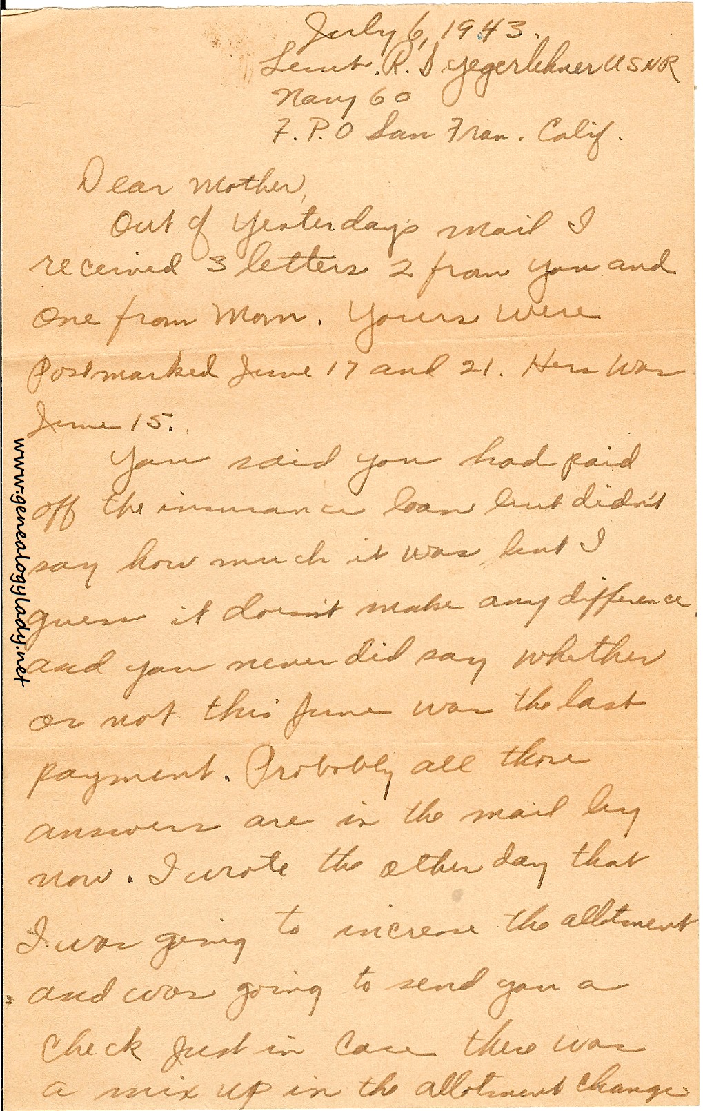 Series I: World War II Correspondence – Roscoe & Gladys (Foster) Yegerlehner, 1942-1946