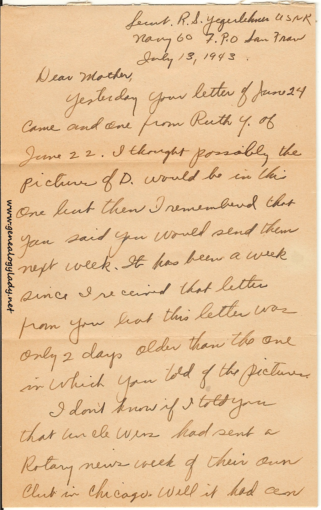 Series I: World War II Correspondence – Roscoe & Gladys (Foster) Yegerlehner, 1942-1946
