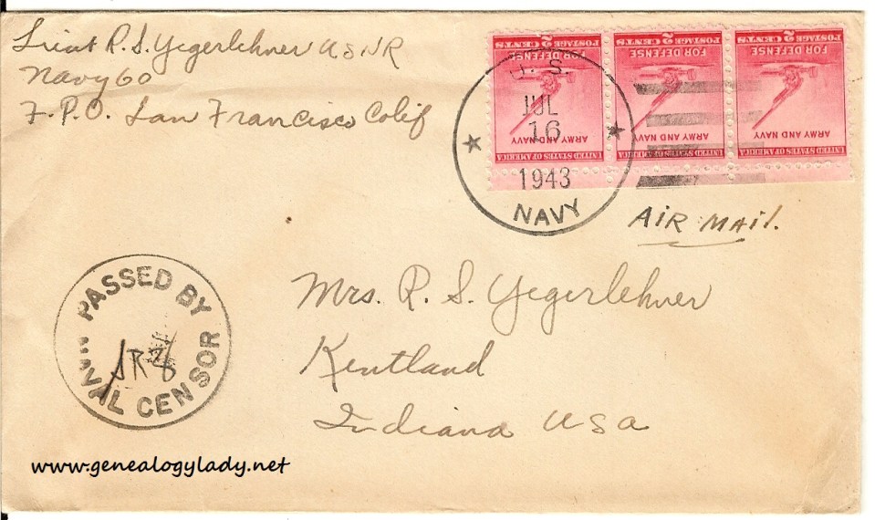 Series I: World War II Correspondence – Roscoe & Gladys (Foster) Yegerlehner, 1942-1946