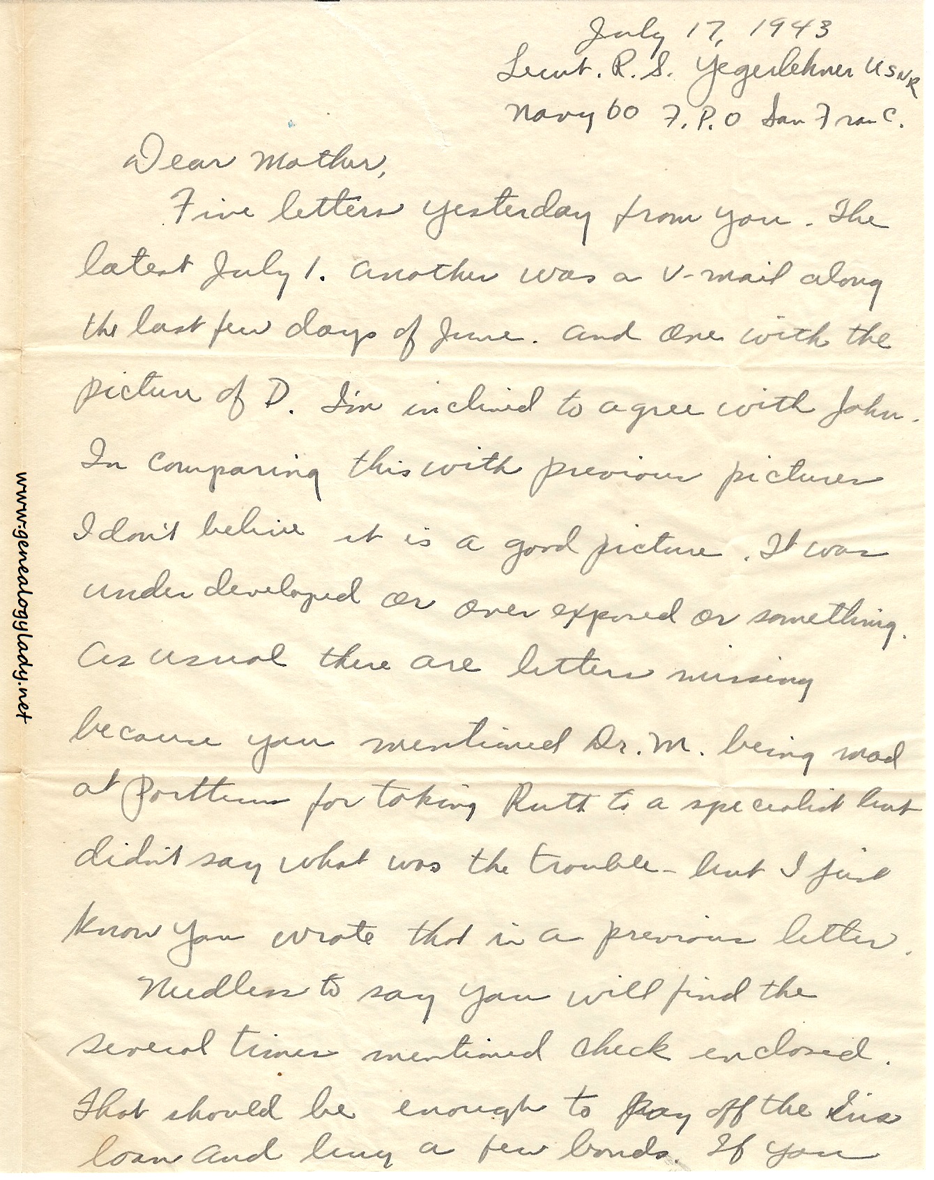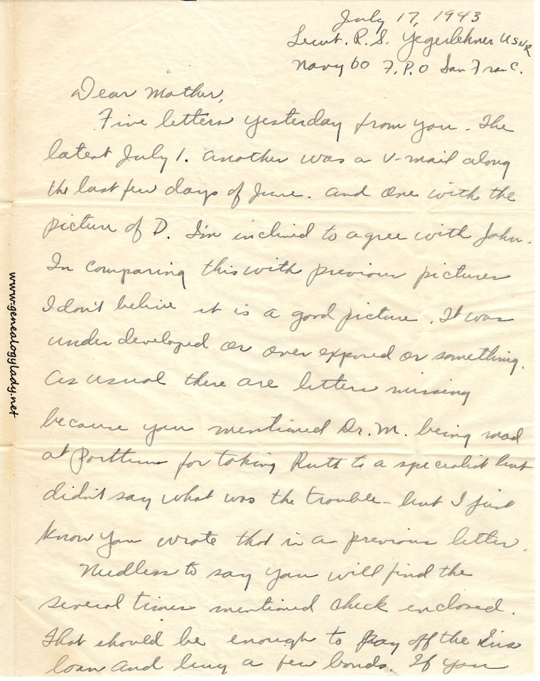 Series I: World War II Correspondence – Roscoe & Gladys (Foster) Yegerlehner, 1942-1946