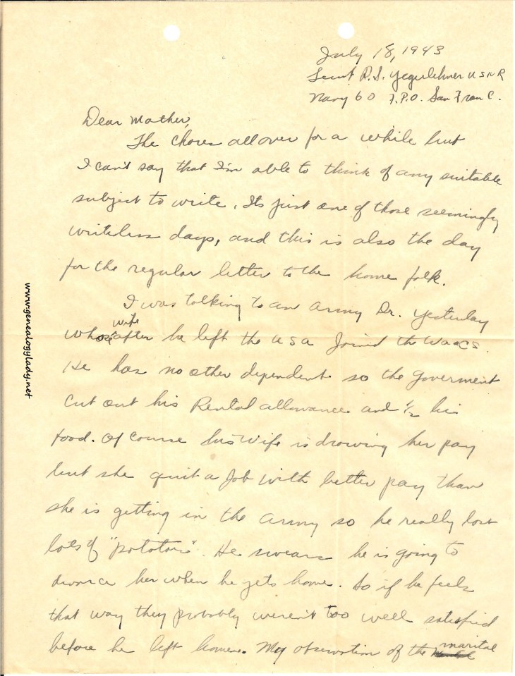 Series I: World War II Correspondence – Roscoe & Gladys (Foster) Yegerlehner, 1942-1946