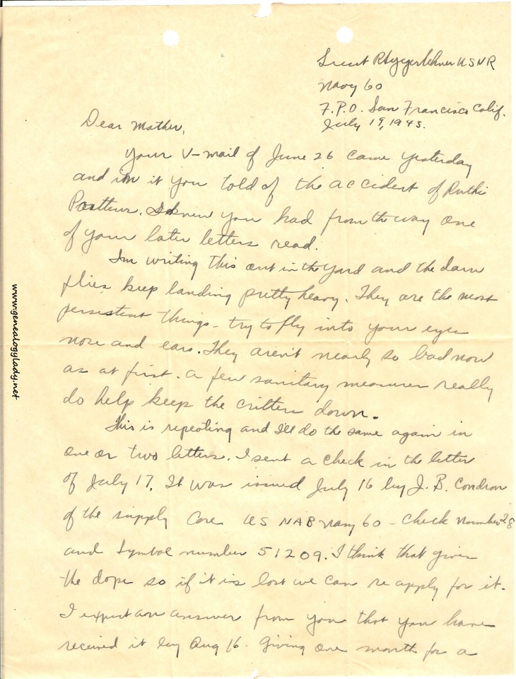 Series I: World War II Correspondence – Roscoe & Gladys (Foster) Yegerlehner, 1942-1946