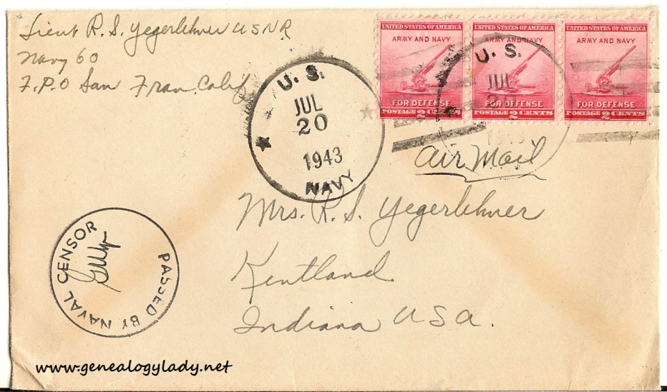 Series I: World War II Correspondence – Roscoe & Gladys (Foster) Yegerlehner, 1942-1946