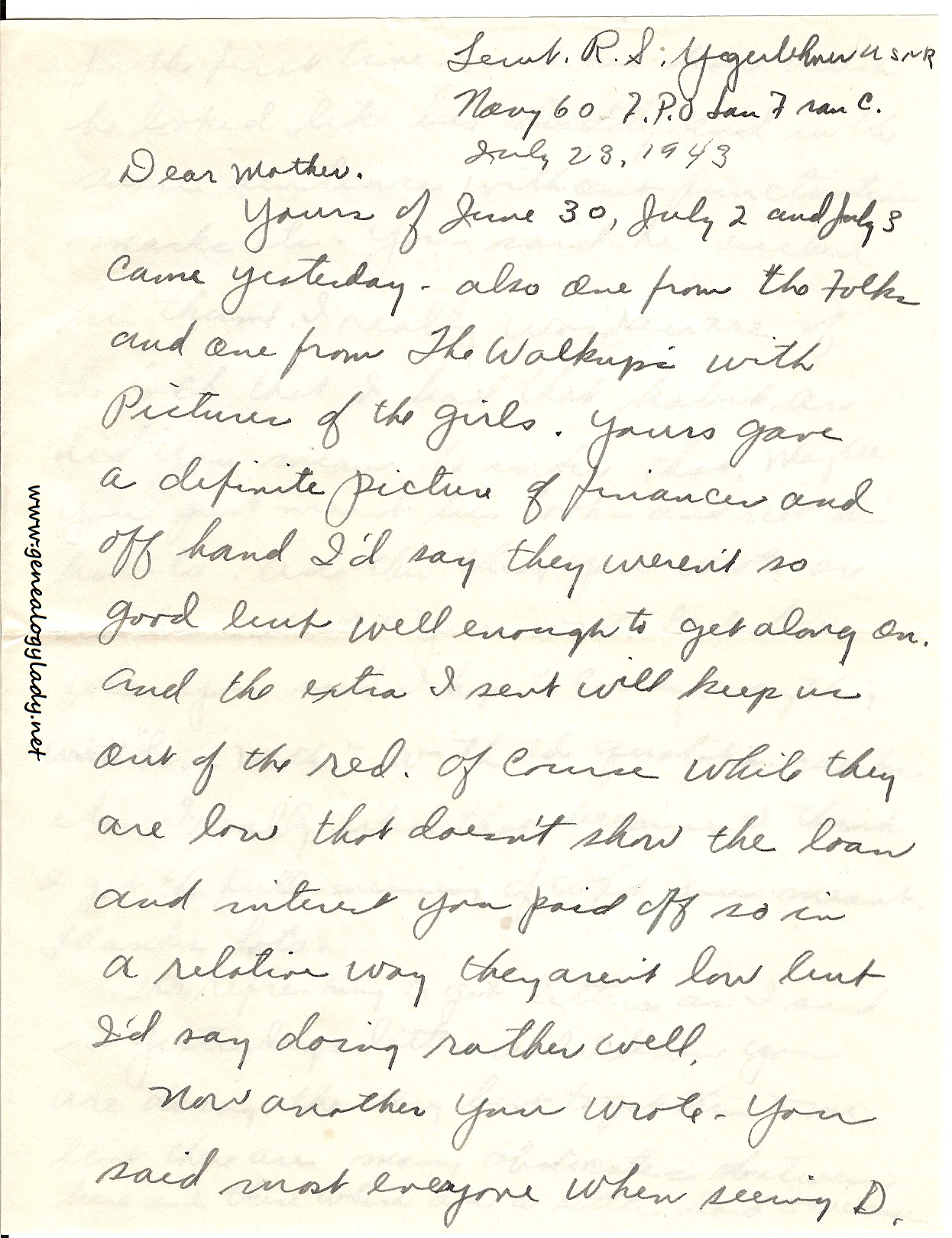Series I: World War II Correspondence – Roscoe & Gladys (Foster) Yegerlehner, 1942-1946