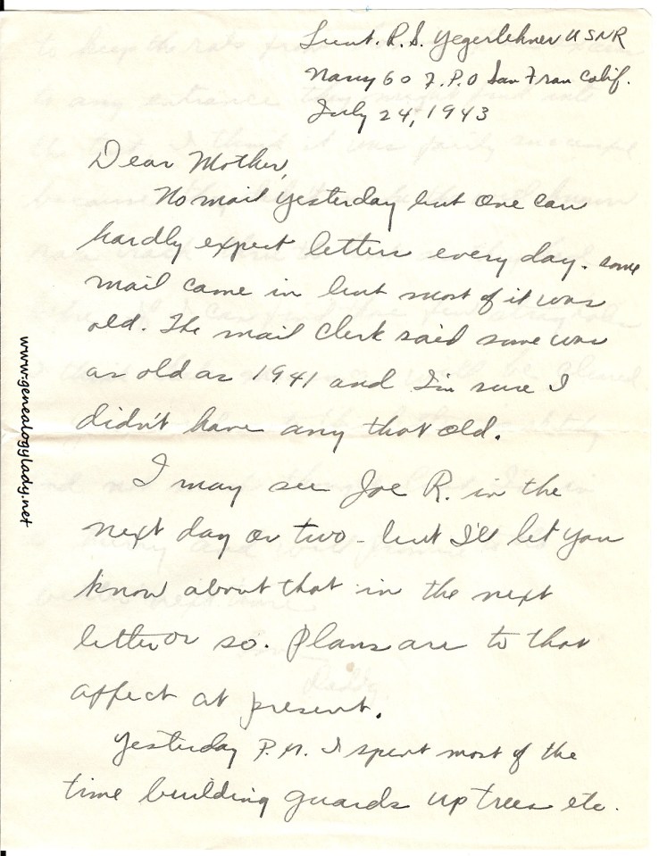 Series I: World War II Correspondence – Roscoe & Gladys (Foster) Yegerlehner, 1942-1946