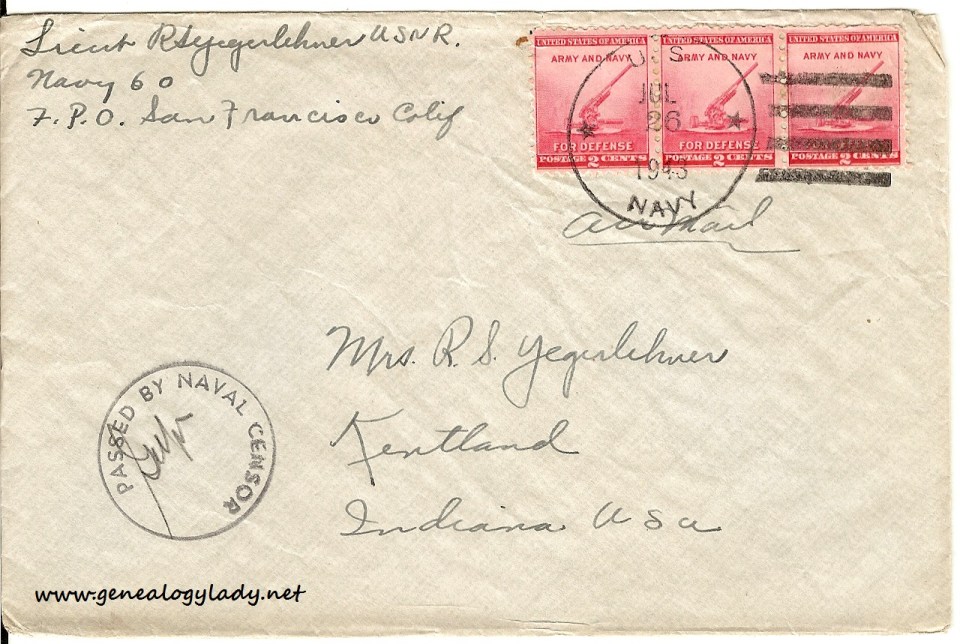Series I: World War II Correspondence – Roscoe & Gladys (Foster) Yegerlehner, 1942-1946