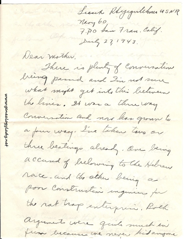 Series I: World War II Correspondence – Roscoe & Gladys (Foster) Yegerlehner, 1942-1946
