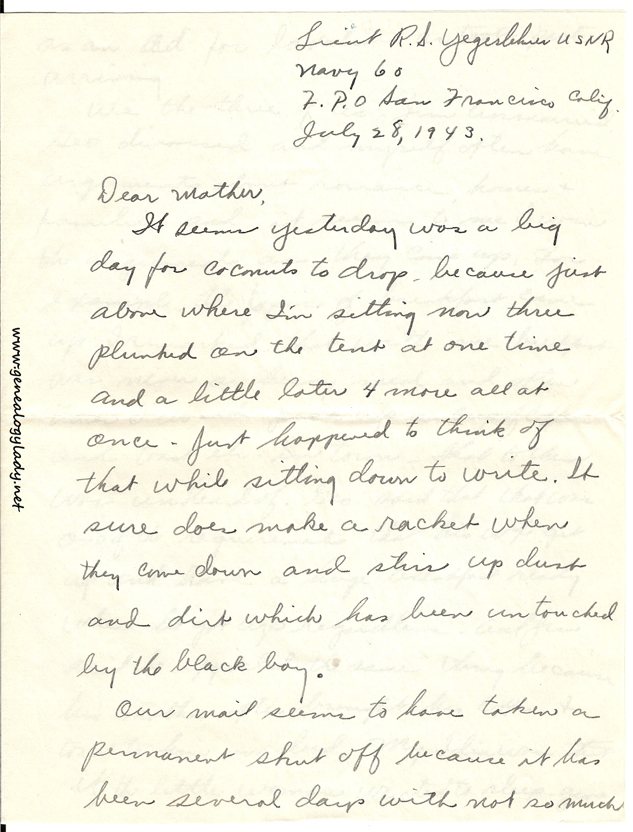 Series I: World War II Correspondence – Roscoe & Gladys (Foster) Yegerlehner, 1942-1946