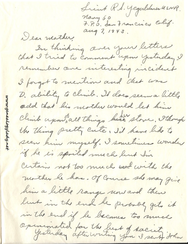Series I: World War II Correspondence – Roscoe & Gladys (Foster) Yegerlehner, 1942-1946