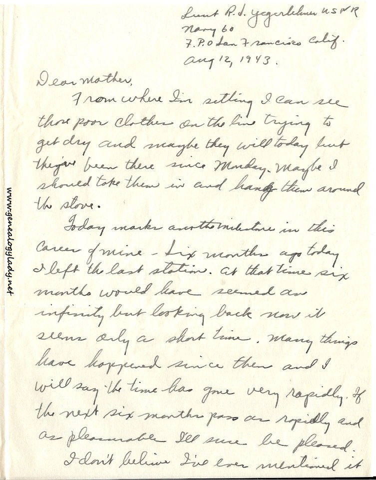 Series I: World War II Correspondence – Roscoe & Gladys (Foster) Yegerlehner, 1942-1946