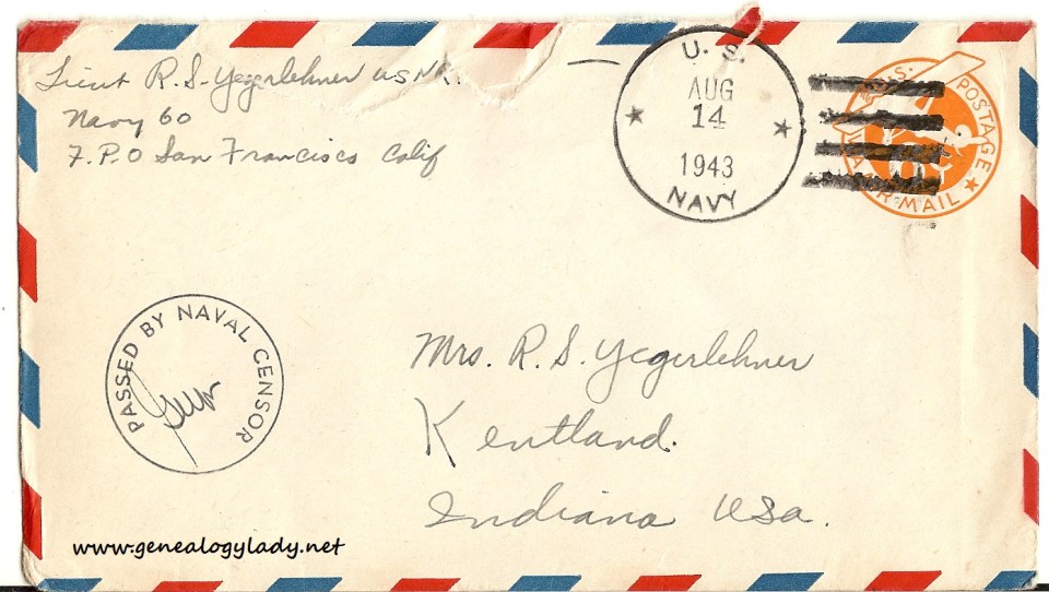 Series I: World War II Correspondence – Roscoe & Gladys (Foster) Yegerlehner, 1942-1946
