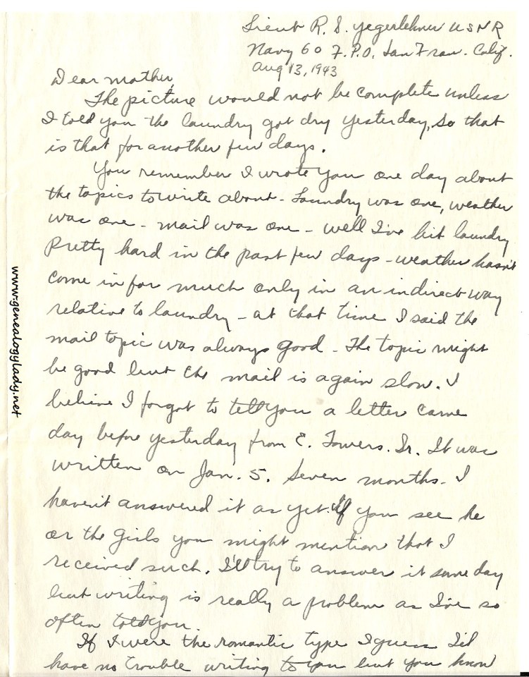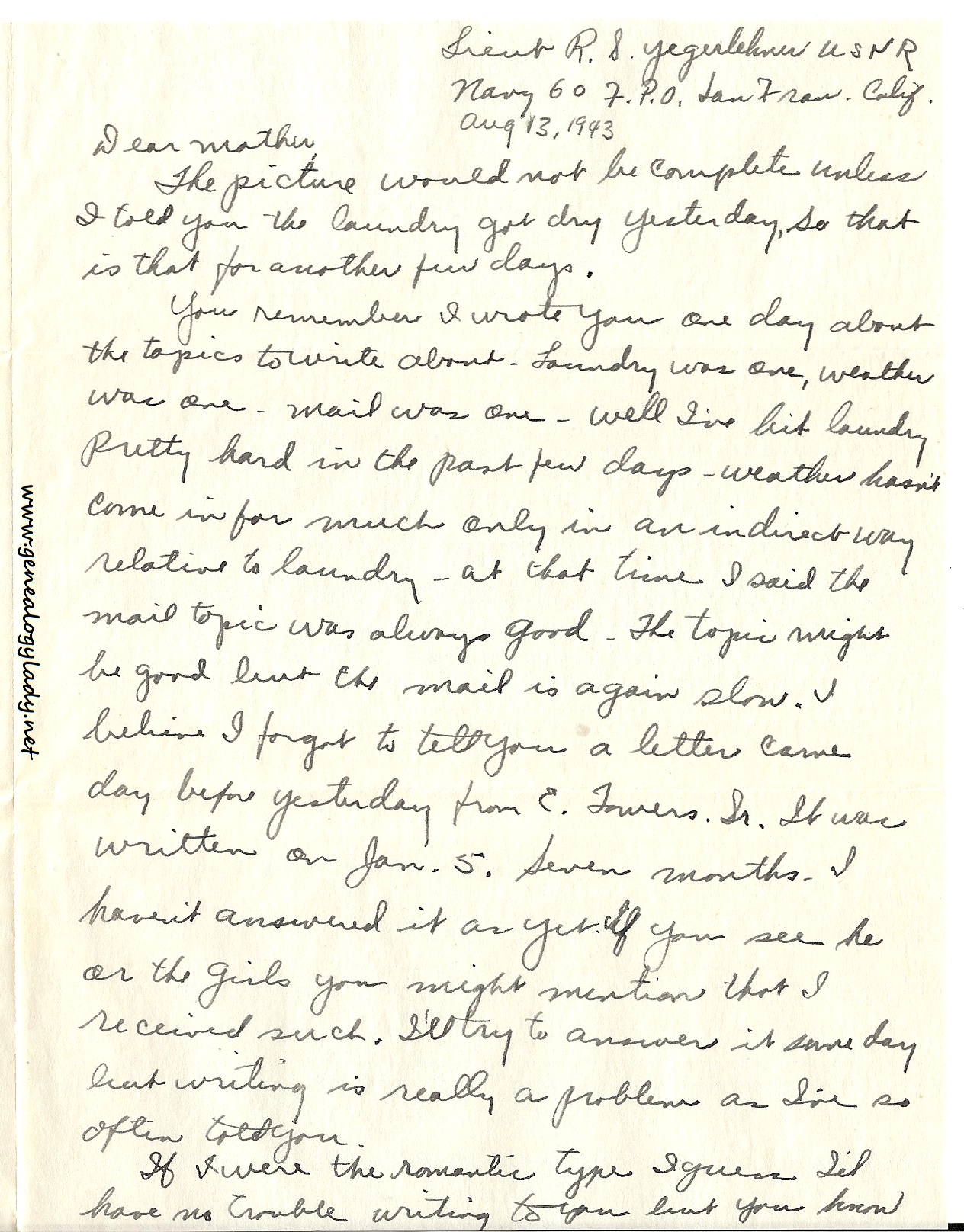 Series I: World War II Correspondence – Roscoe & Gladys (Foster) Yegerlehner, 1942-1946