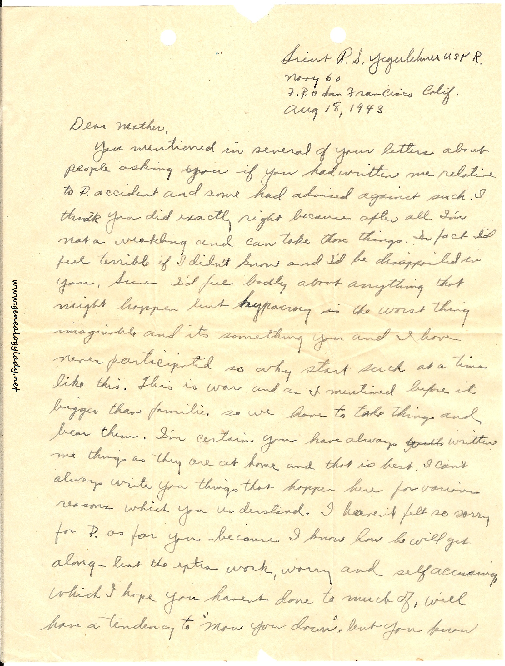 Series I: World War II Correspondence – Roscoe & Gladys (Foster) Yegerlehner, 1942-1946