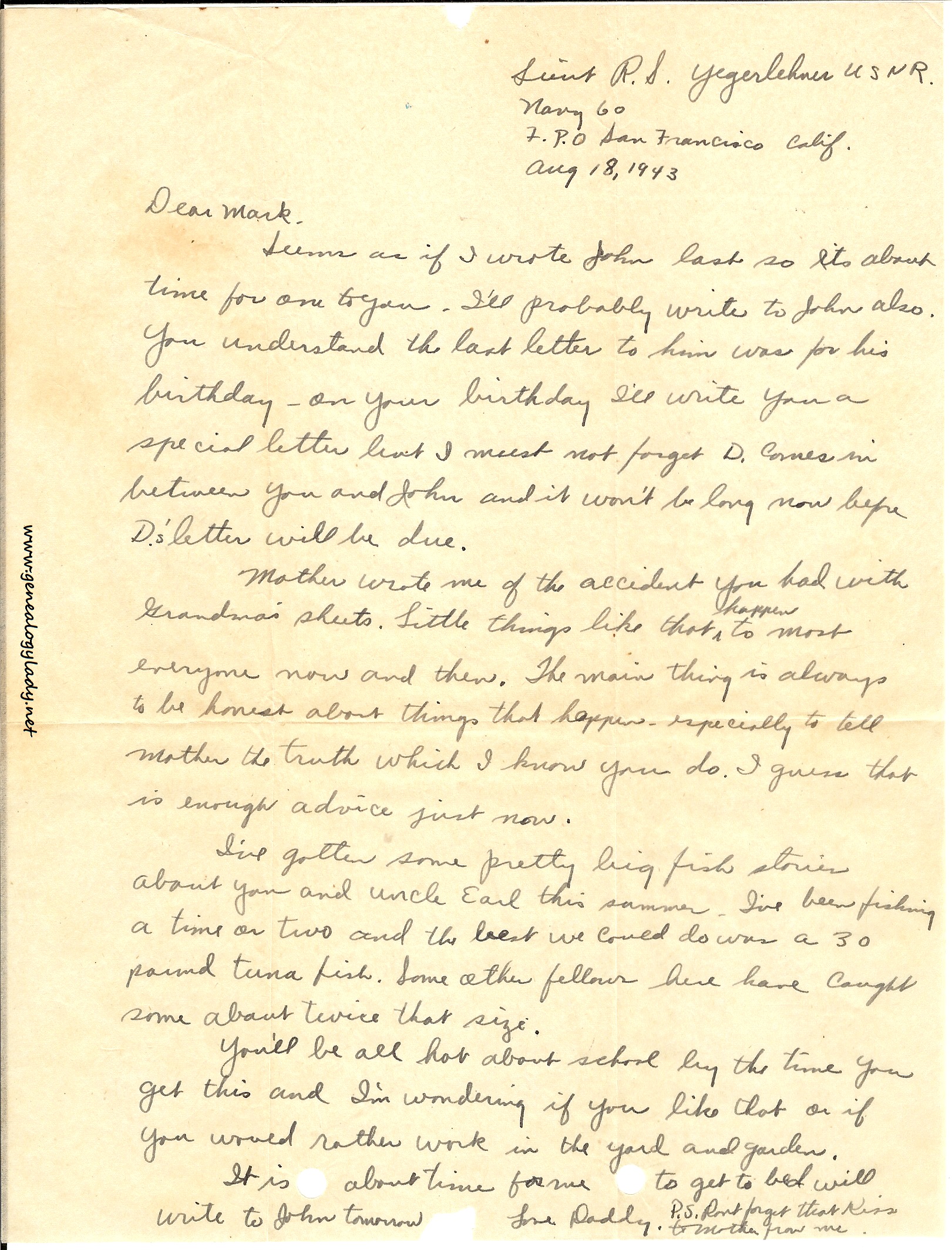 1943-08-18 (RSY) Letter to Mark