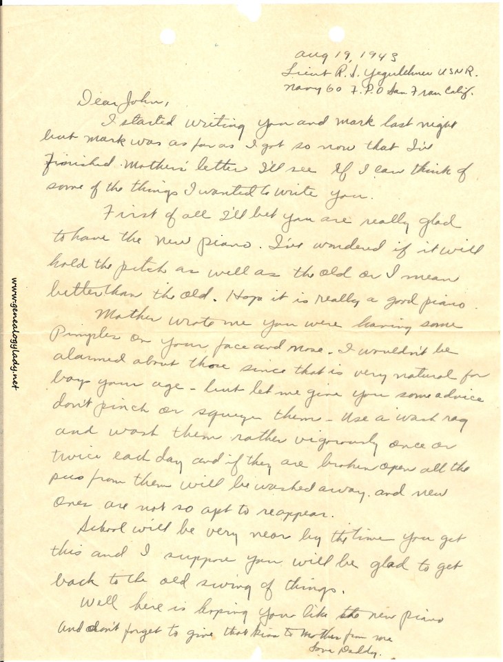Series I: World War II Correspondence – Roscoe & Gladys (Foster) Yegerlehner, 1942-1946