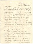 [page 2] affect than if they were told to you in person. So if you are depressed let me know and I’ll try to keep all these things and tell them to you in person when that day arrives. I’d like to be able to write my feelings a little more – shall I say not so bluntly but you know how I am more on the practical side and less on the – I can’t think of the word or words to express that other side which goes to prove my practical point of view.