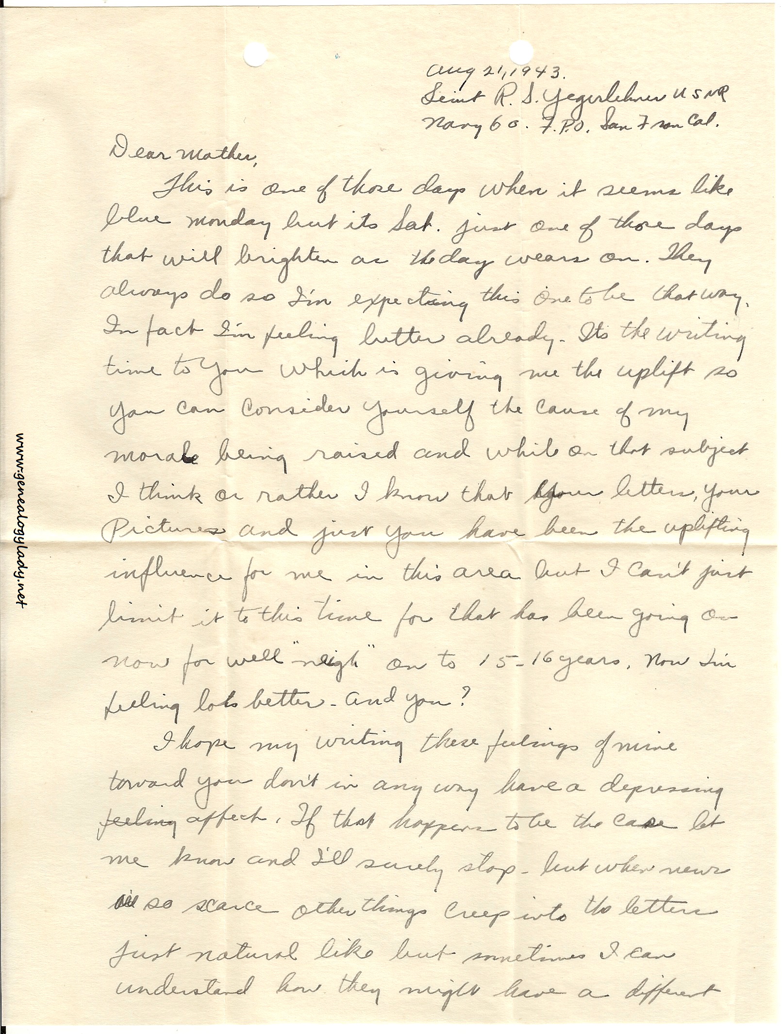 Series I: World War II Correspondence – Roscoe & Gladys (Foster) Yegerlehner, 1942-1946