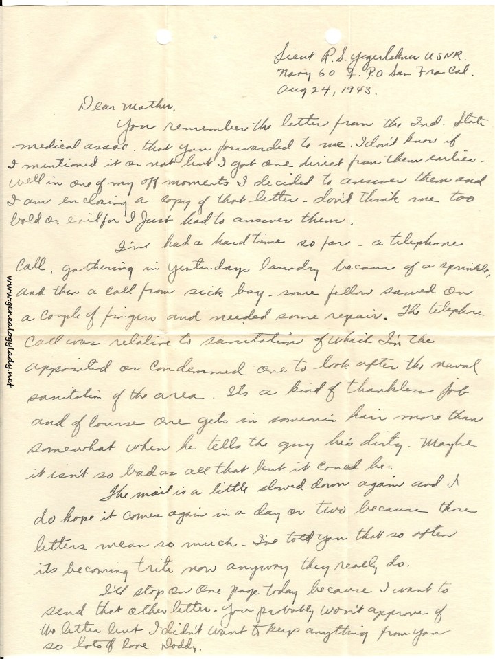 Series I: World War II Correspondence – Roscoe & Gladys (Foster) Yegerlehner, 1942-1946