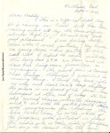 [page 2] arrangement, but I felt crowded with davenport next to the piano. The desk is now in dining room where antique table was sitting – antique table now sits in n.w. corner of living room. John wanted to place the radio where it is so we had to move your smoking stand away – That bothered him so I placed it by the wing chair – which sits next to the piano now. A lot of “lady stuff,” John would say.
