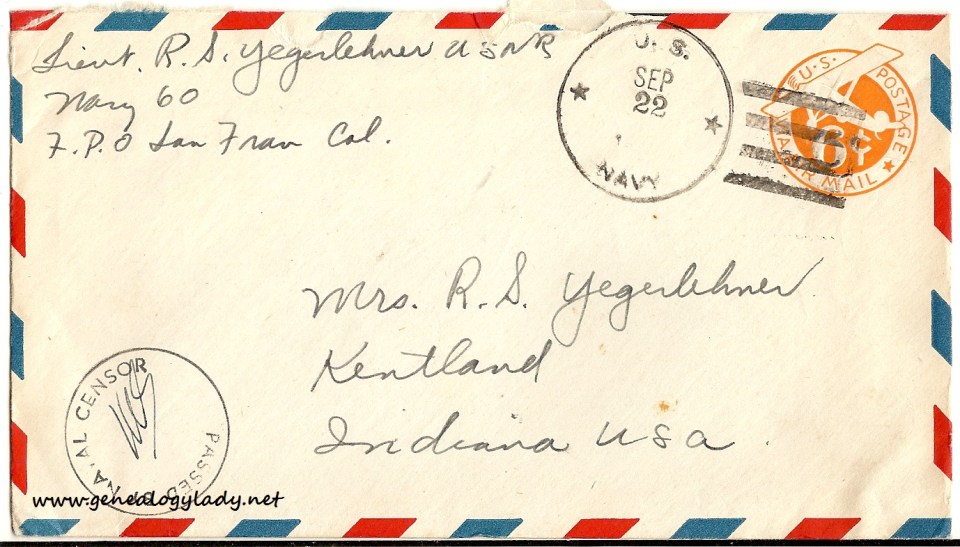 Series I: World War II Correspondence – Roscoe & Gladys (Foster) Yegerlehner, 1942-1946