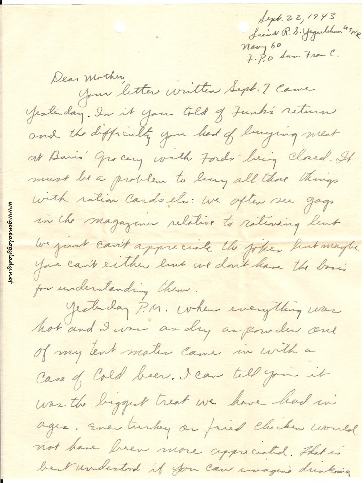 Series I: World War II Correspondence – Roscoe & Gladys (Foster) Yegerlehner, 1942-1946