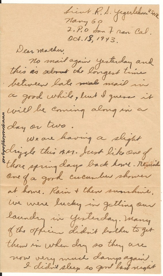 Series I: World War II Correspondence – Roscoe & Gladys (Foster) Yegerlehner, 1942-1946