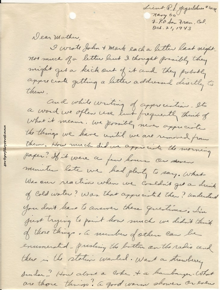 Series I: World War II Correspondence – Roscoe & Gladys (Foster) Yegerlehner, 1942-1946
