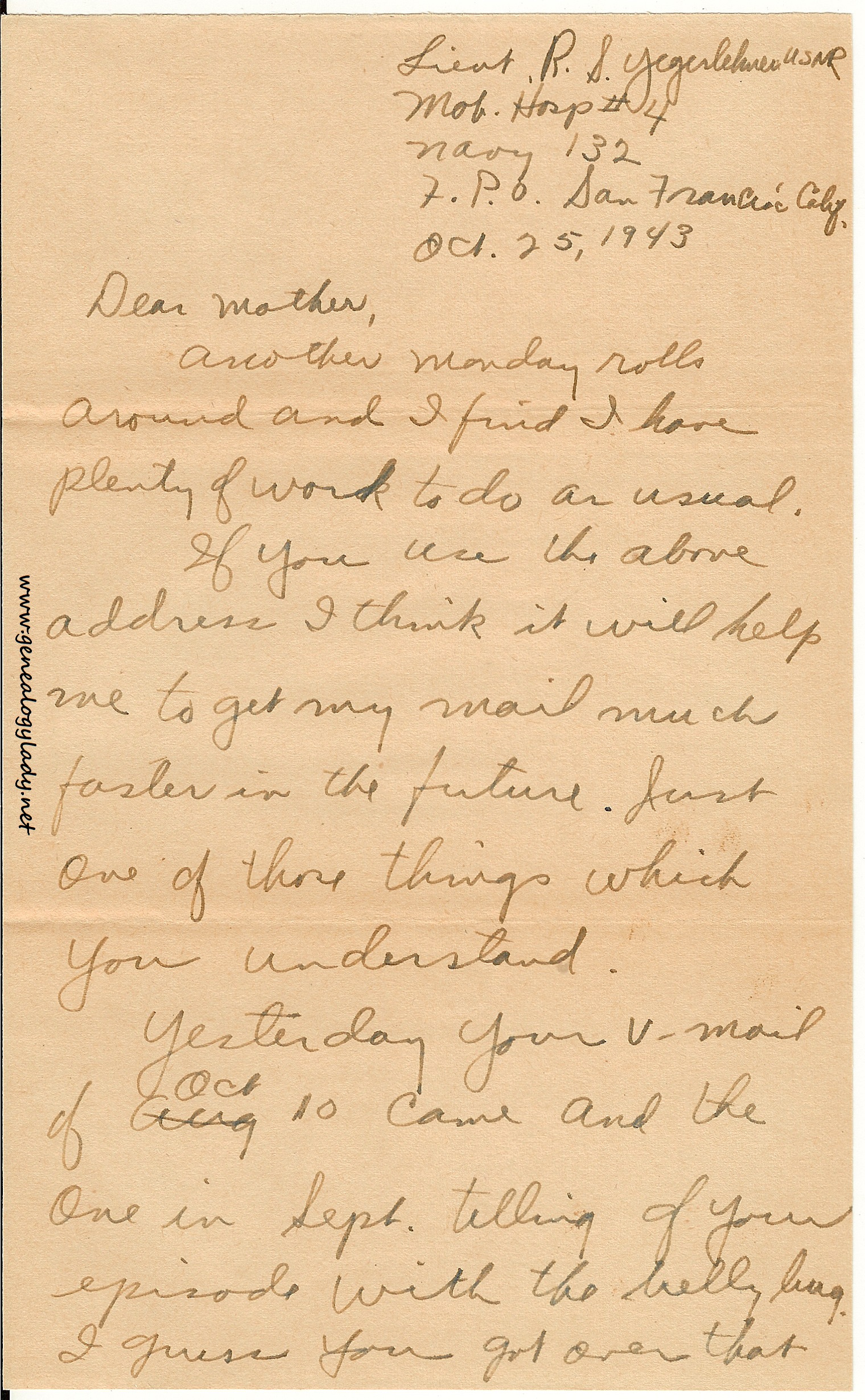 Series I: World War II Correspondence – Roscoe & Gladys (Foster) Yegerlehner, 1942-1946