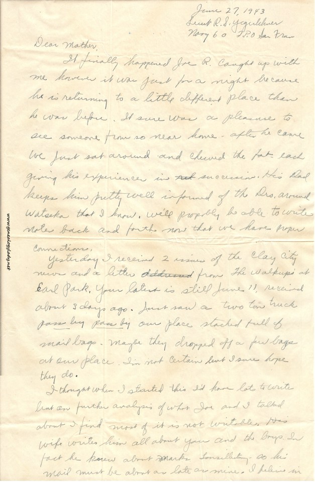 Series I: World War II Correspondence – Roscoe & Gladys (Foster) Yegerlehner, 1942-1946