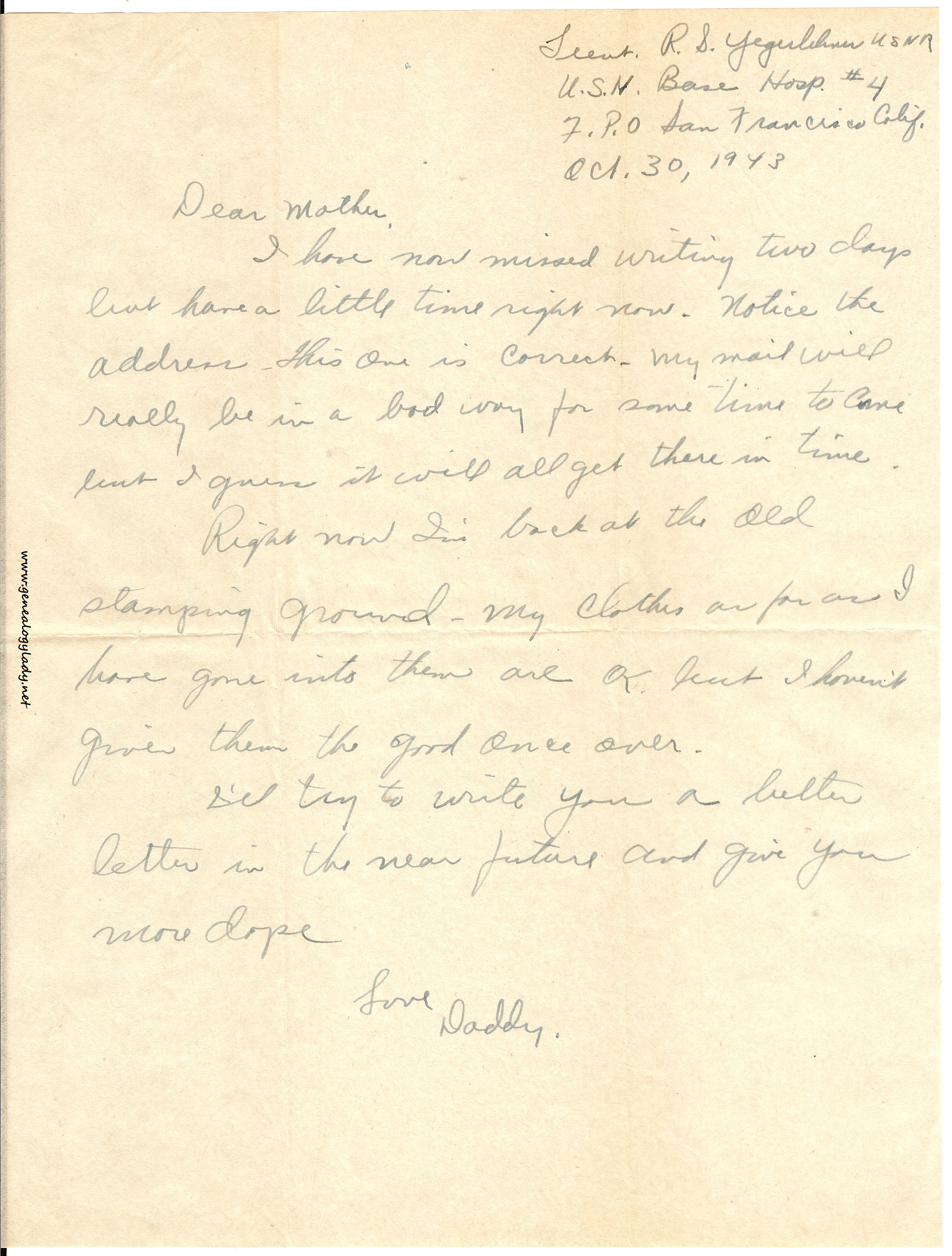 Series I: World War II Correspondence – Roscoe & Gladys (Foster) Yegerlehner, 1942-1946