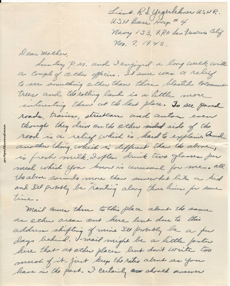 Series I: World War II Correspondence – Roscoe & Gladys (Foster) Yegerlehner, 1942-1946