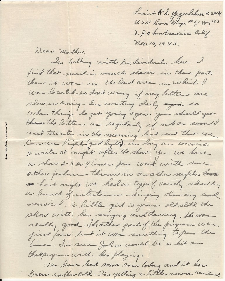 Series I: World War II Correspondence – Roscoe & Gladys (Foster) Yegerlehner, 1942-1946