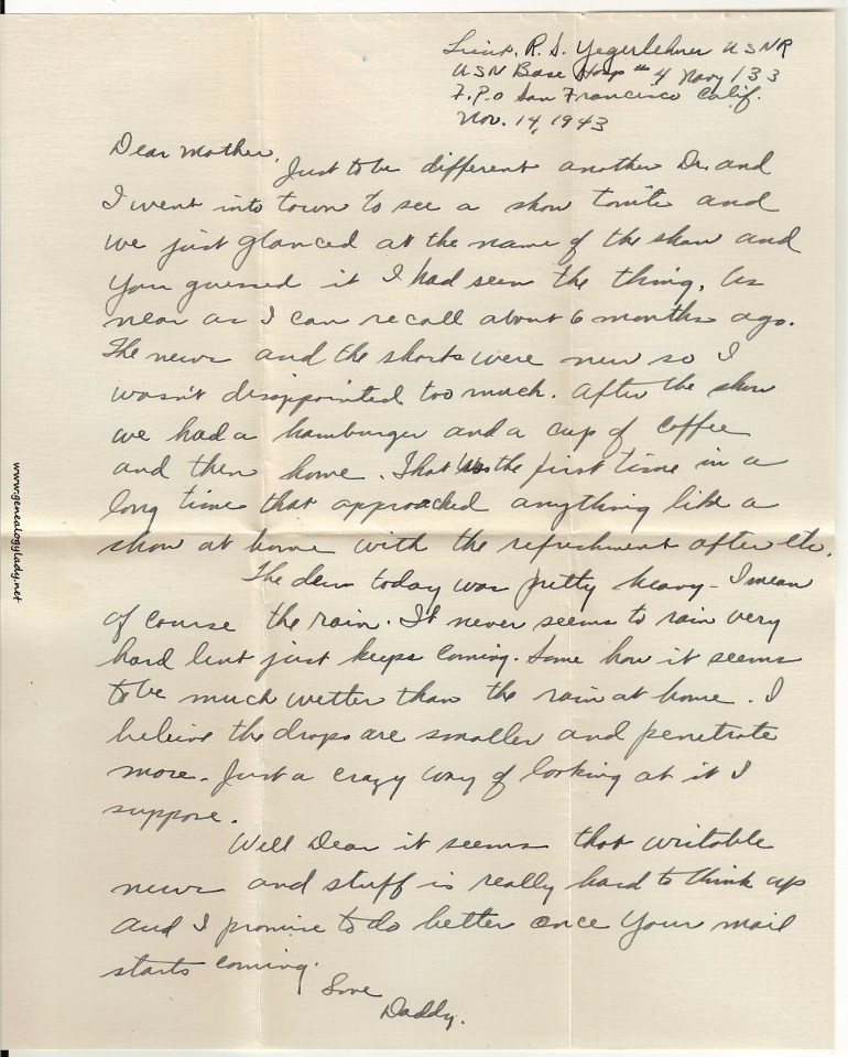 Series I: World War II Correspondence – Roscoe & Gladys (Foster) Yegerlehner, 1942-1946