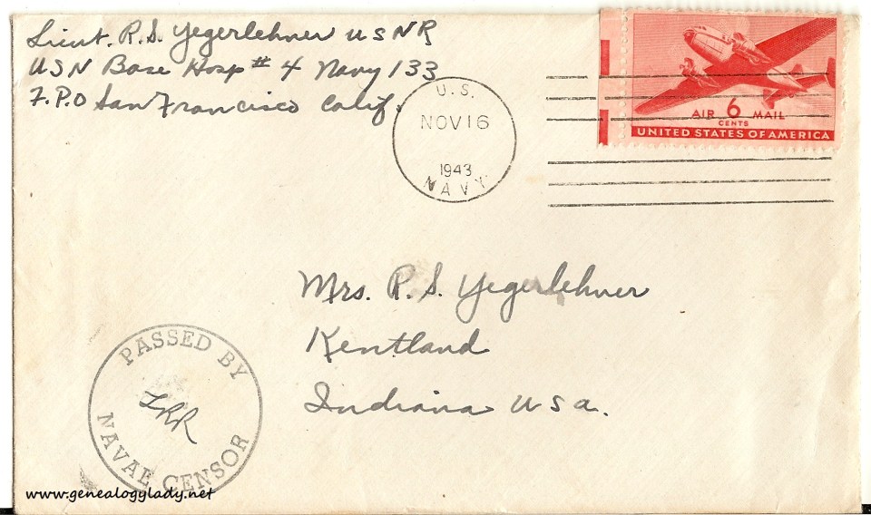 Series I: World War II Correspondence – Roscoe & Gladys (Foster) Yegerlehner, 1942-1946
