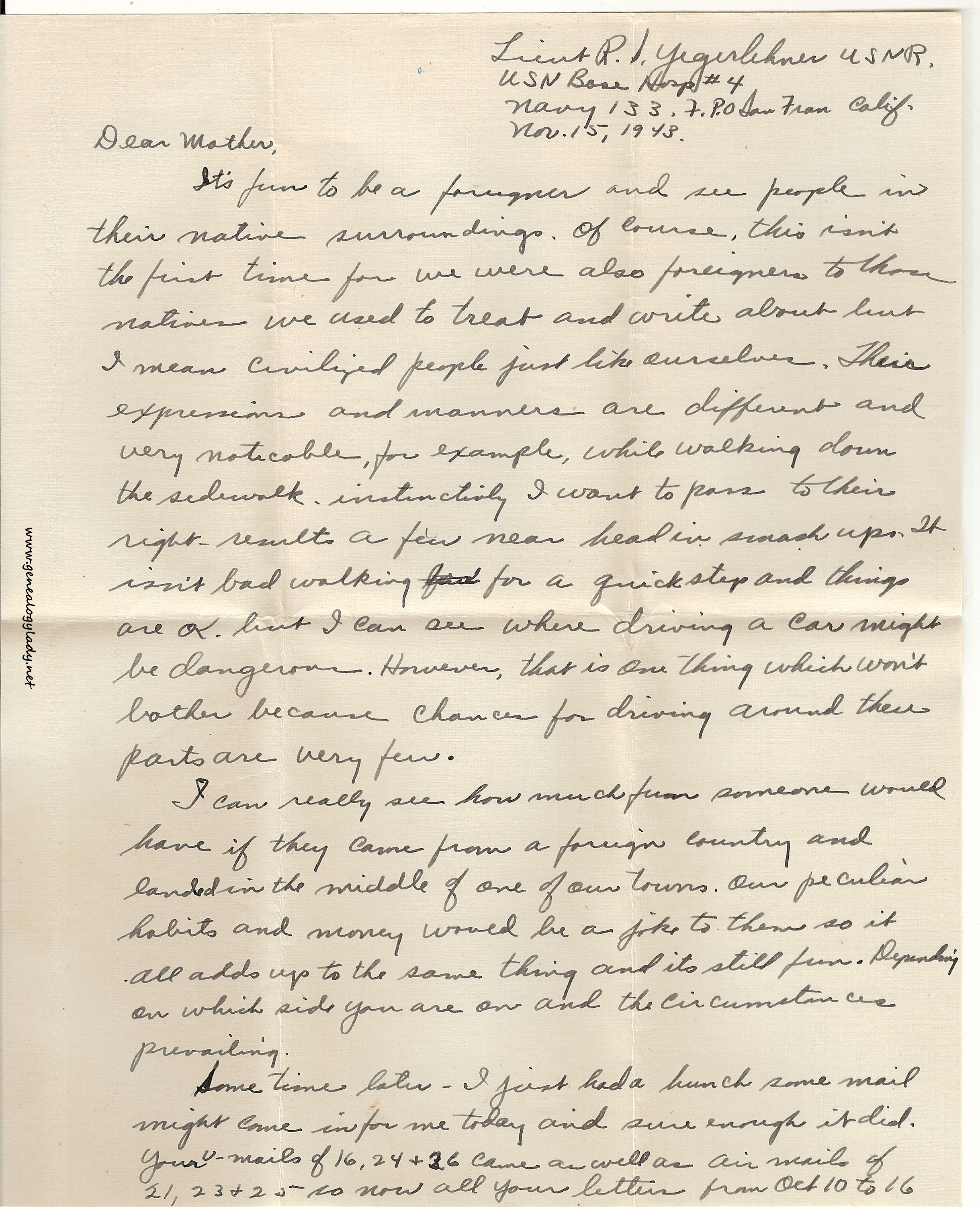 Series I: World War II Correspondence – Roscoe & Gladys (Foster) Yegerlehner, 1942-1946