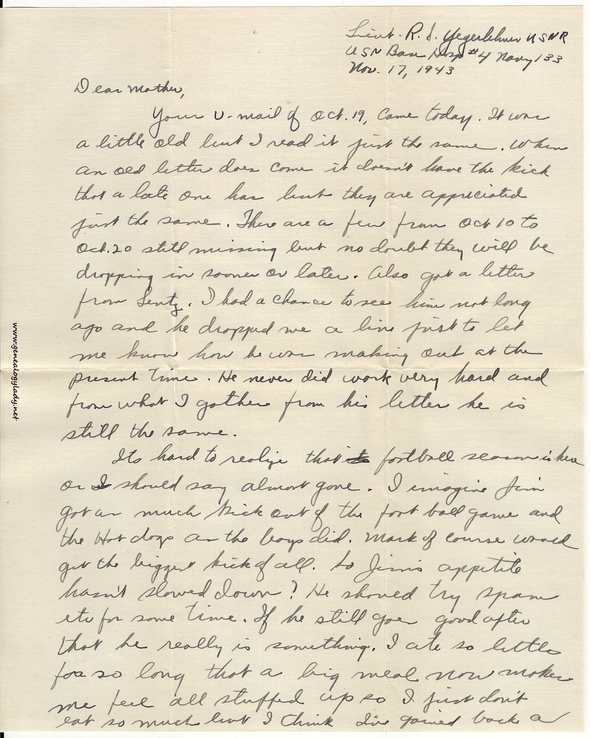 Series I: World War II Correspondence – Roscoe & Gladys (Foster) Yegerlehner, 1942-1946