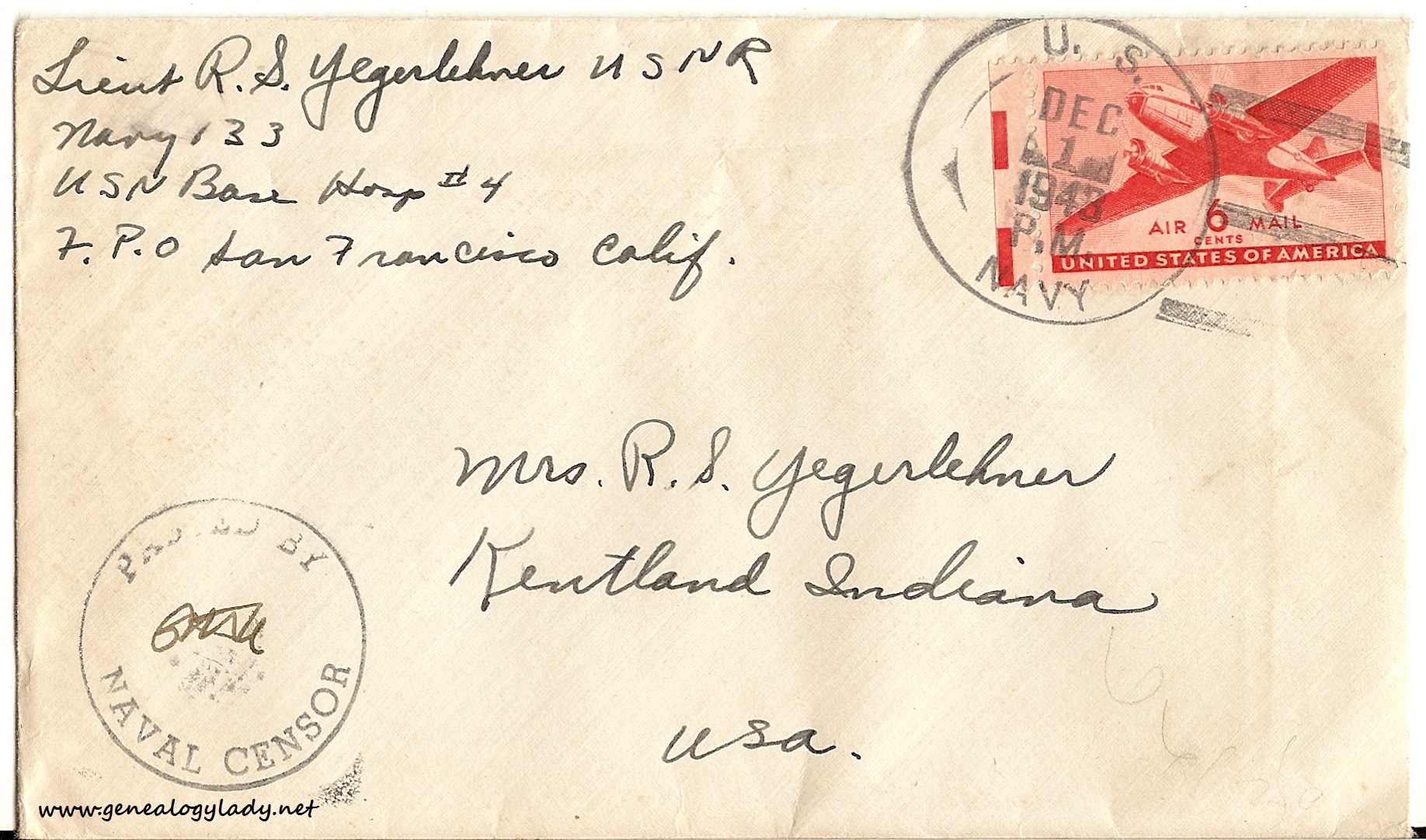 Series I: World War II Correspondence – Roscoe & Gladys (Foster) Yegerlehner, 1942-1946