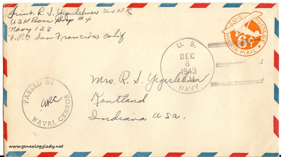 Series I: World War II Correspondence – Roscoe & Gladys (Foster) Yegerlehner, 1942-1946