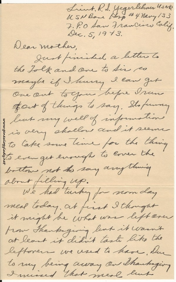 Series I: World War II Correspondence – Roscoe & Gladys (Foster) Yegerlehner, 1942-1946