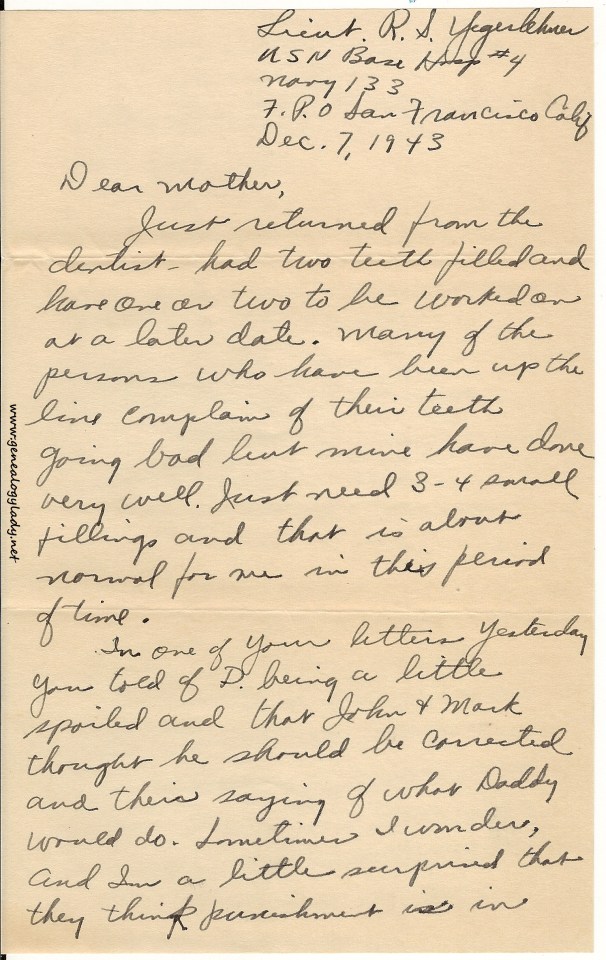Series I: World War II Correspondence – Roscoe & Gladys (Foster) Yegerlehner, 1942-1946