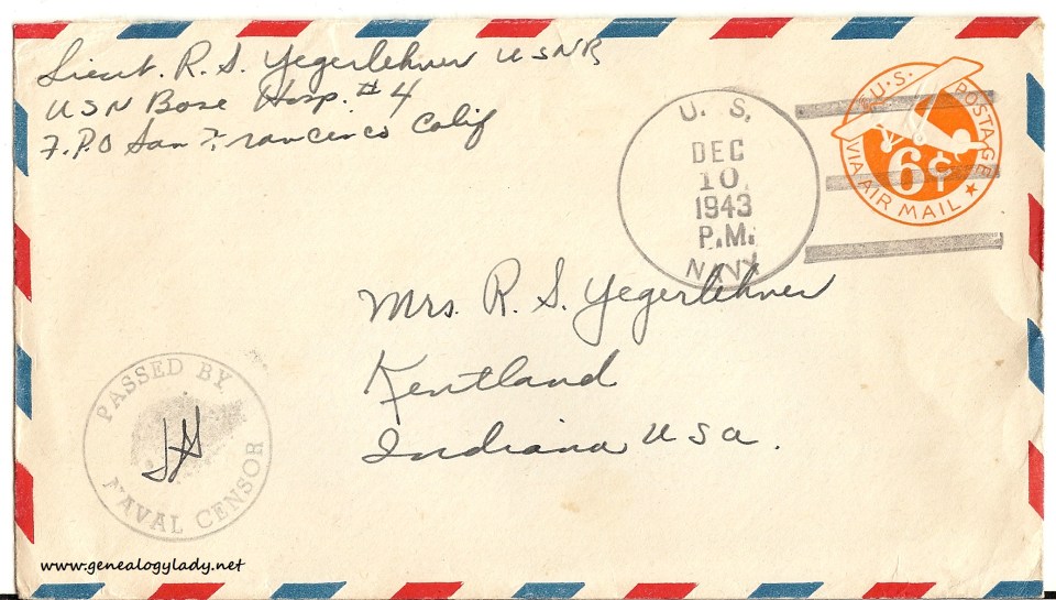Series I: World War II Correspondence – Roscoe & Gladys (Foster) Yegerlehner, 1942-1946