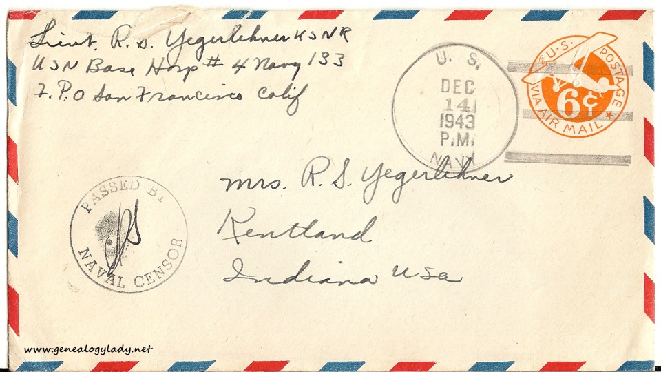 Series I: World War II Correspondence – Roscoe & Gladys (Foster) Yegerlehner, 1942-1946