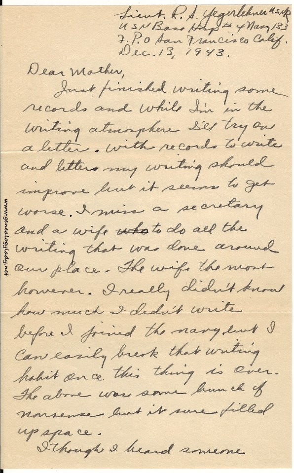 Series I: World War II Correspondence – Roscoe & Gladys (Foster) Yegerlehner, 1942-1946
