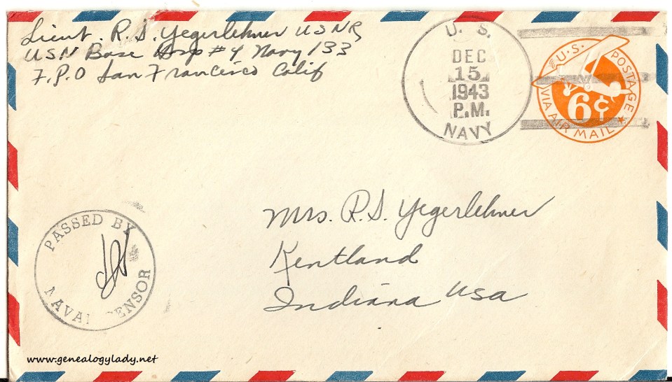 Series I: World War II Correspondence – Roscoe & Gladys (Foster) Yegerlehner, 1942-1946